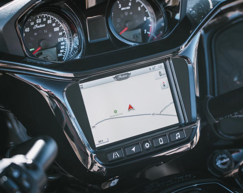 | Ride Command® | 7-Zoll-Display mit vorinstallierter GPS-Navigation, Apple CarPlay®, Bluetooth®-Konnektivität, konfigurierbaren Anzeigen, Fahrstatistiken und weiteren Funktionen. |